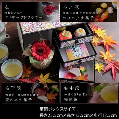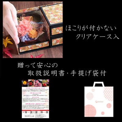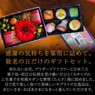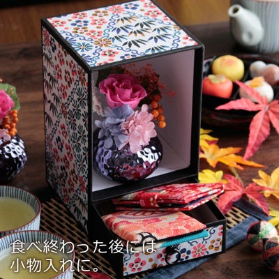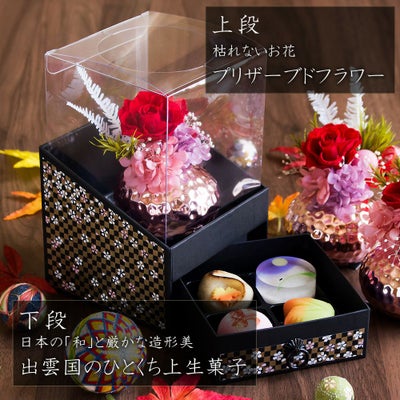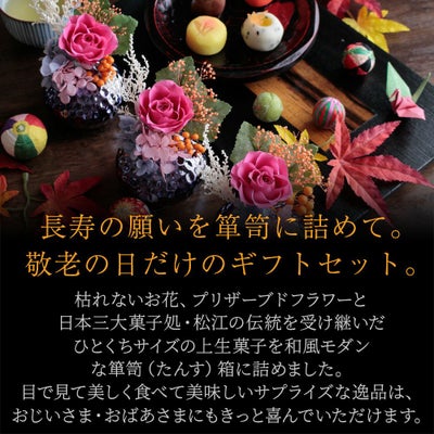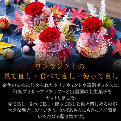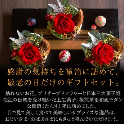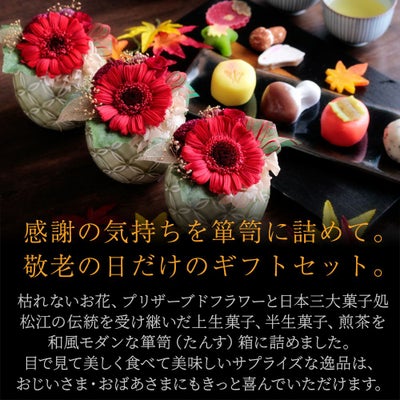 他の画像を見る 飾れるオリジナル和箪笥箱入り 敬老の日 プリザーブドフラワー&ひとくち上生菓子セット「華舞(はなのまい)」 箪笥箱入り 送料無料(北海道・沖縄を除く) 価格 ¥ 3,680 税込 在庫切れ 詳細を見る お気に入りに登録する