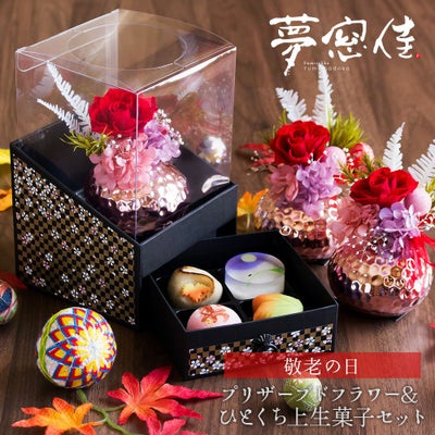 他の画像を見る モダンジャパニーズテイストが美しい 敬老の日 プリザーブドフラワー&ひとくち上生菓子セット「夢窓佳(ゆめまどか)」 クリア箪笥箱入り 送料無料(北海道・沖縄を除く) 価格 ¥ 3,980 税込 在庫切れ 詳細を見る お気に入りに登録する