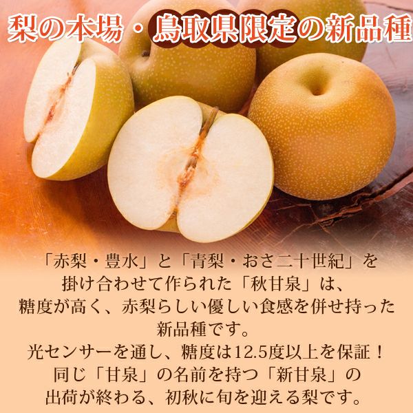 他の画像を見る 光センサー糖度12.5度以上保証!鳥取の“New”赤梨ブランド 秋甘泉(あきかんせん)5kg詰(8~14玉入)梨 鳥取県産 赤秀 送料無料 価格 ¥ 6,980 税込 在庫切れ 詳細を見る お気に入りに登録する