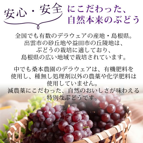 他の画像を見る 安心・安全にこだわった、自然本来のぶどう 桑本農園のデラウェア1キロ詰(6~8房入/L~2Lサイズ) 島根県産 送料無料(北海道・沖縄を除く) 価格 ¥ 4,980 税込 在庫切れ 詳細を見る お気に入りに登録する