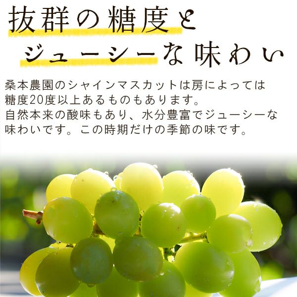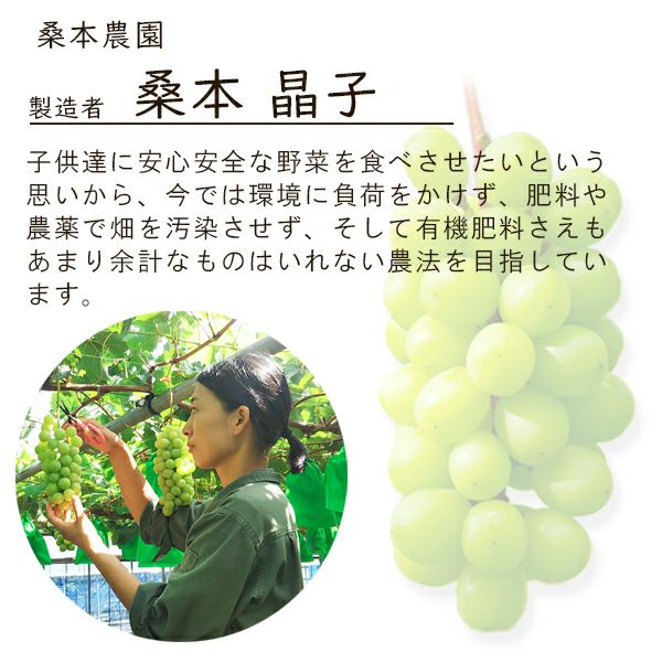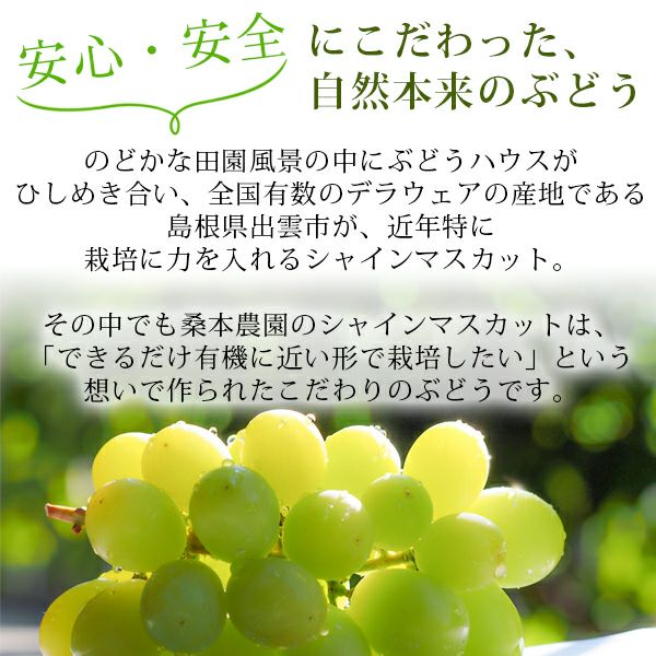 他の画像を見る 「できるだけ有機に近い形で栽培したい」 桑本農園のシャインマスカット600g前後×1房 ご贈答用 島根県産 送料無料(北海道・沖縄を除く) 価格 ¥ 4,480 税込 在庫切れ 詳細を見る お気に入りに登録する