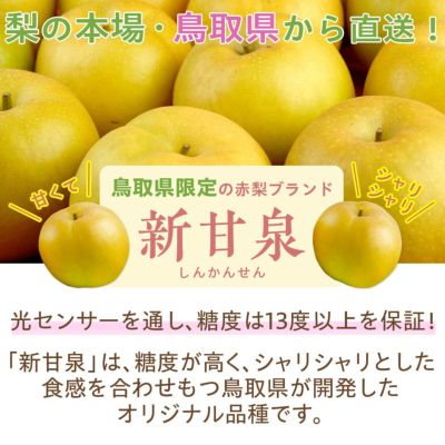 他の画像を見る 光センサー糖度13度以上保証!鳥取の“New”赤梨ブランド 鳥取県産 新甘泉(しんかんせん)5kg詰(8~18玉入) 梨 赤秀 送料無料 価格 ¥ 7,980 税込 在庫切れ 詳細を見る お気に入りに登録する