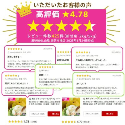 他の画像を見る 光センサー糖度13度以上保証!鳥取の“New”赤梨ブランド 鳥取県産 新甘泉(しんかんせん)2kg詰(5~6玉入) 梨 赤秀 送料無料 価格 ¥ 5,480 税込 在庫切れ 詳細を見る お気に入りに登録する