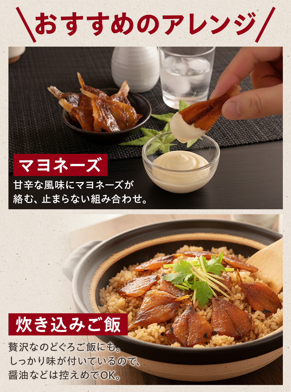 島根県産のどぐろを惜しむことなく使用し、甘辛な浜焼きに仕上げました。職人が遠赤外線でじっくり焼いた表面は香ばしく、中はこだわりのしっとり食感。噛むたびに魚の濃厚な旨みがあふれ出します。高級魚のどぐろを手軽に楽しめる、ちょっぴり贅沢なおつまみです。