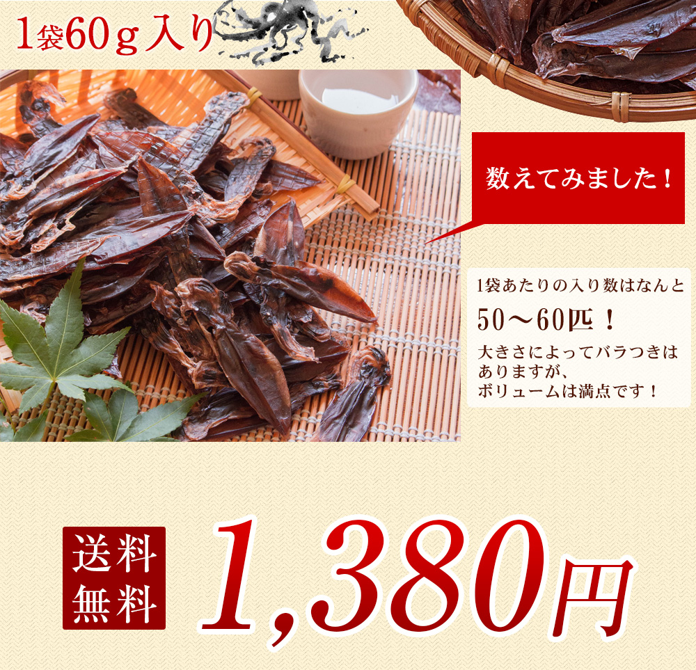 “無添加・冷風乾燥”ほたるいか素干し60g 送料無料 ネコポス(他商品との同梱不可)