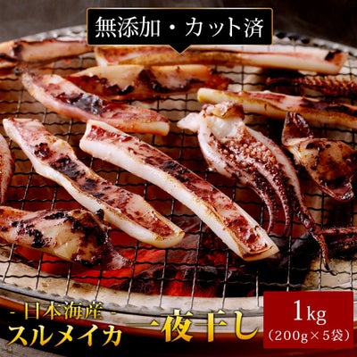 スルメイカ 一夜干し1kg(カット済み) 日本海産 ゲソ入り するめいか 干物 国産 無添加 冷凍 おつまみ 送料無料(北海道・沖縄を除く)
