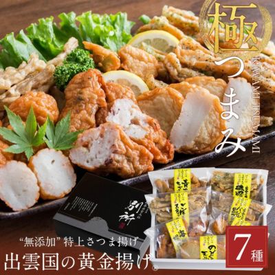 他の画像を見る こだわりの伝統製法が光る「神話の国の贈り物」 【無添加】特上さつま揚げ「出雲国の黄金揚げ 極(きわみ)つまみ」7種詰合せ(のどぐろ天・ちくわ磯辺揚げほか) おつまみ セット 薩摩揚げ 揚げかまぼこ 天ぷら ギフト 送料無料(北海道・沖縄を除く) 価格 ¥ 4,680 税込 カートに入れる お気に入りに登録する