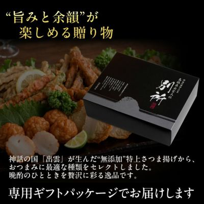 他の画像を見る こだわりの伝統製法が光る「神話の国の贈り物」 【無添加】特上さつま揚げ「出雲国の黄金揚げ 極(きわみ)つまみ」5種詰合せ(のどぐろ天・海鮮揚げほか) おつまみ セット 薩摩揚げ 揚げかまぼこ 天ぷら ギフト 送料無料(北海道・沖縄を除く) 価格 ¥ 3,680 税込 カートに入れる お気に入りに登録する