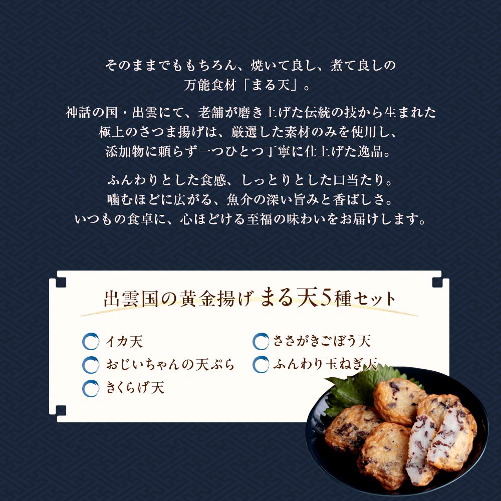 【無添加】特上さつま揚げ「出雲国の黄金揚げ まる天」5種詰合せ(イカ天・玉ねぎ天ほか) おつまみ セット 薩摩揚げ 揚げかまぼこ 天ぷら ギフト 送料無料(北海道・沖縄を除く)