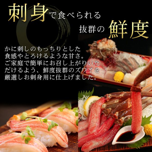 他の画像を見る 高鮮度ポーション!とろっと濃厚な甘みに大満足 ズワイガニ かにしゃぶ・お刺身ポーション600g(20~40本) かに カニ 蟹 ギフト 送料無料(北海道・沖縄を除く) 価格 ¥ 10,980 税込 カートに入れる お気に入りに登録する