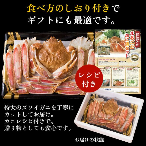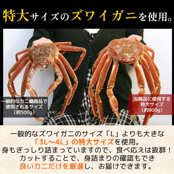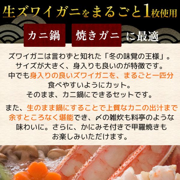 他の画像を見る 生ズワイガニをまるごと1枚使用!カニ鍋や焼きガニに かにみそ付き 生ズワイガニまるごとかに鍋セット約400g(2~3人前) かに カニ 蟹 送料無料(北海道・沖縄を除く) 価格 ¥ 8,980 税込 カートに入れる お気に入りに登録する