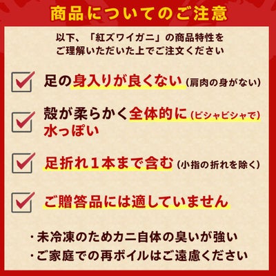 他の画像を見る 本場・山陰境港産のとれたて未冷凍紅ずわいがにを産地直送 【蒸したて未冷凍で直送】鳥取・境港産 “港蒸し” 紅ズワイガニ(ベニズワイガニ/べにずわいがに) 訳あり 2kgセット(4~8枚入) 姿 かに カニ 蟹 送料無料(北海道・沖縄を除く) 価格 ¥ 14,480 税込 詳細を見る お気に入りに登録する