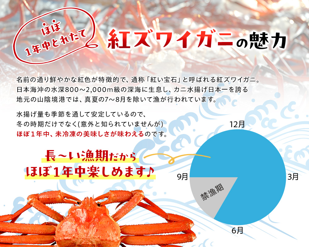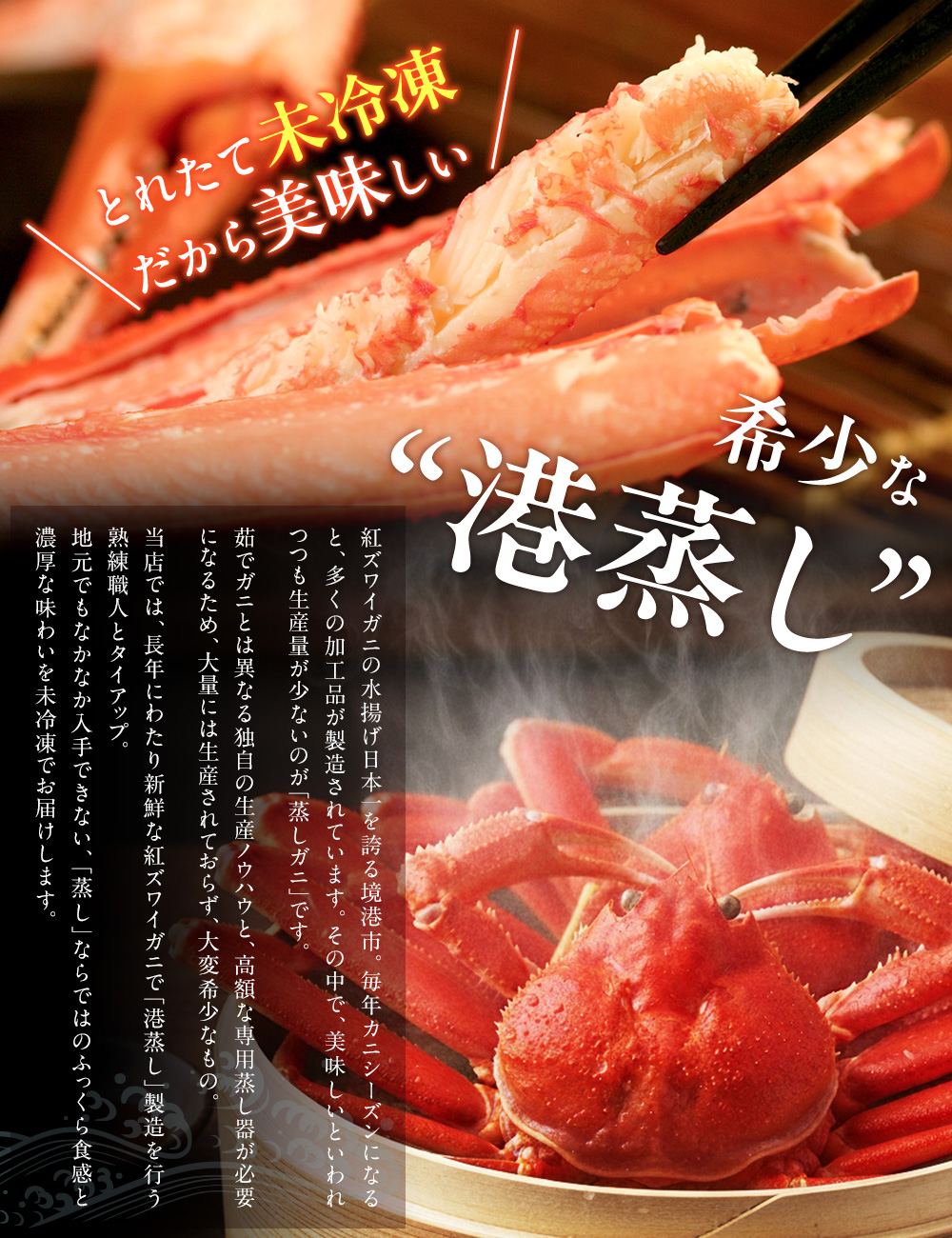 本場・山陰境港産のとれたて未冷凍紅ずわいがにを産地直送