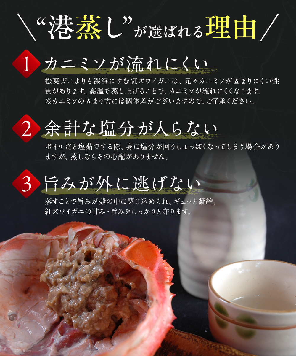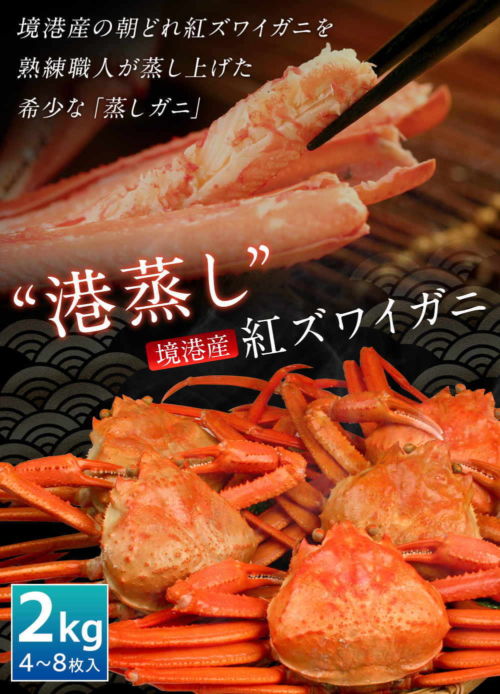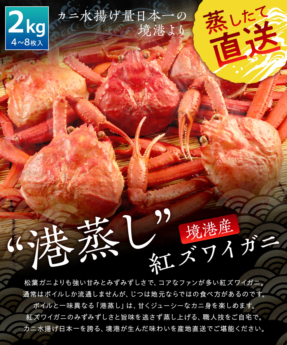 【蒸したて未冷凍で直送】鳥取・境港産 “港蒸し” 紅ズワイガニ(ベニズワイガニ/べにずわいがに) 訳あり 2kgセット(4~8枚入) 姿 かに カニ 蟹 送料無料(北海道・沖縄を除く)