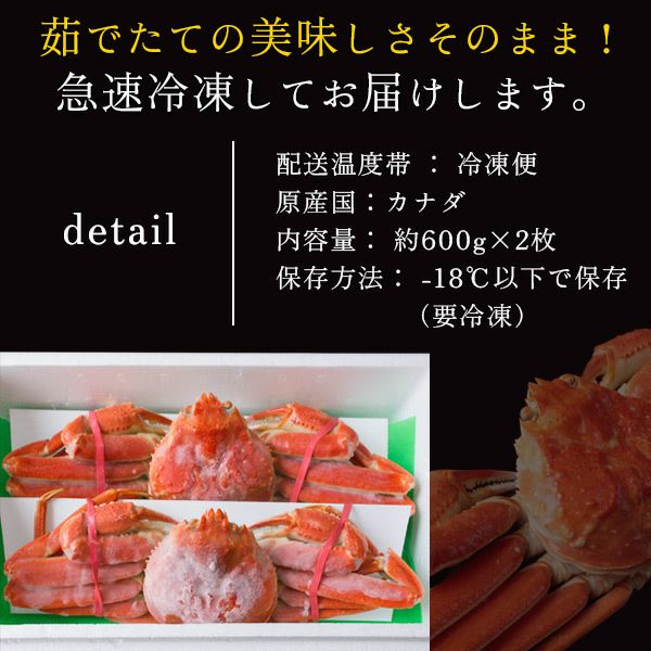 他の画像を見る 食べ応え抜群の本場カナダ産 ボイルズワイガニ姿1.2kg(600g前後×2枚セット) かに カニ 蟹 送料無料(北海道・沖縄を除く) 価格 ¥ 12,980 税込 カートに入れる お気に入りに登録する