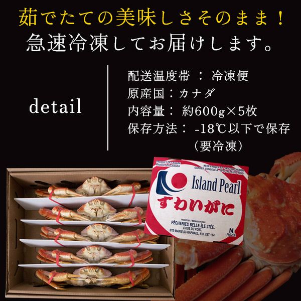 他の画像を見る 食べ応え抜群の本場カナダ産 ボイルズワイガニ姿3kg(600g前後×5枚セット) かに カニ 蟹 送料無料(北海道・沖縄を除く) 価格 ¥ 26,980 税込 カートに入れる お気に入りに登録する