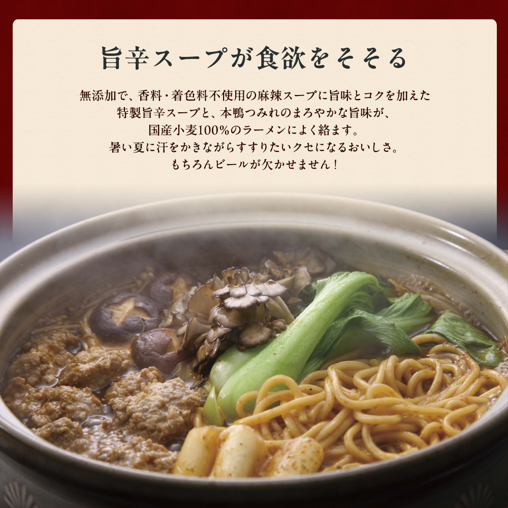 薬膳香る旨辛スープが絶品!食通も絶賛の鴨つみれラーメン4食入り。