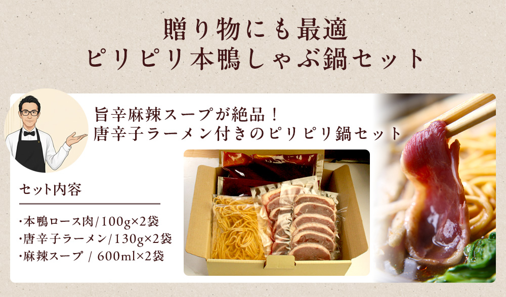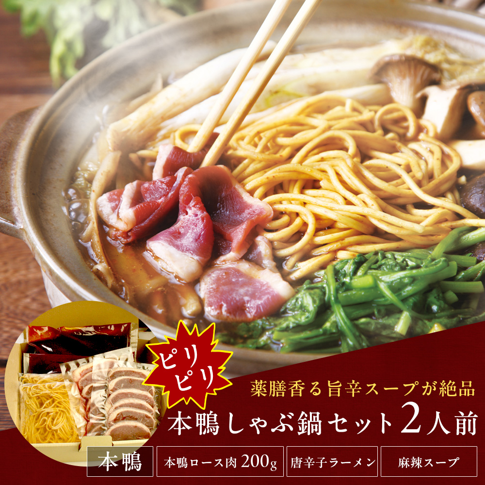 ピリピリ本鴨しゃぶ鍋2人前(唐辛子ラーメン付き鴨鍋) 送料無料