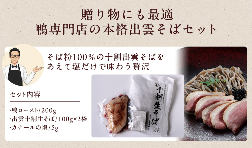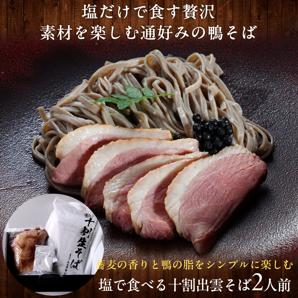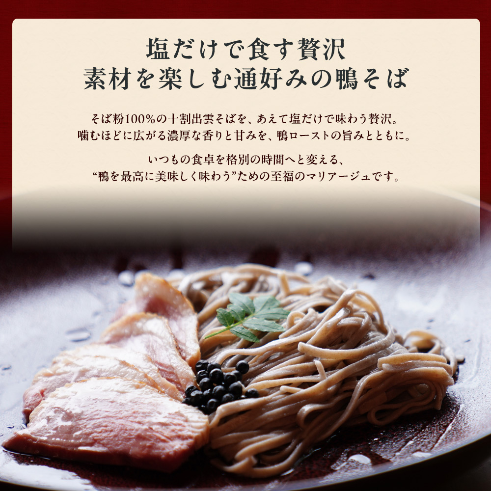 塩で食べる十割出雲そば2人前 鴨ロースト添え 送料無料