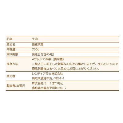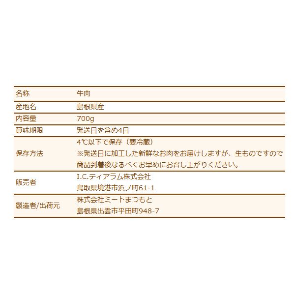 しまね和牛(島根和牛)特選カルビ焼肉700g 送料無料