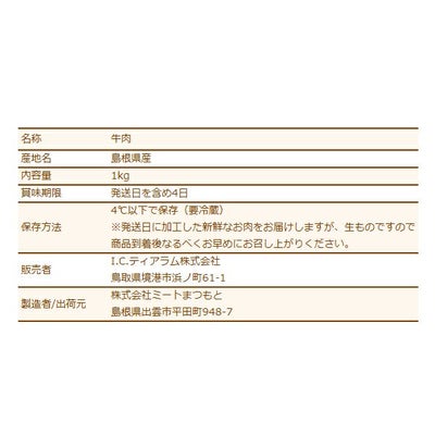 しまね和牛(島根和牛)ヘルシーモモカルビ焼肉1kg 送料無料