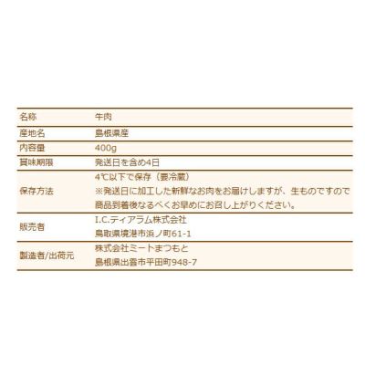 しまね和牛(島根和牛)特選カルビ焼肉400g 送料無料