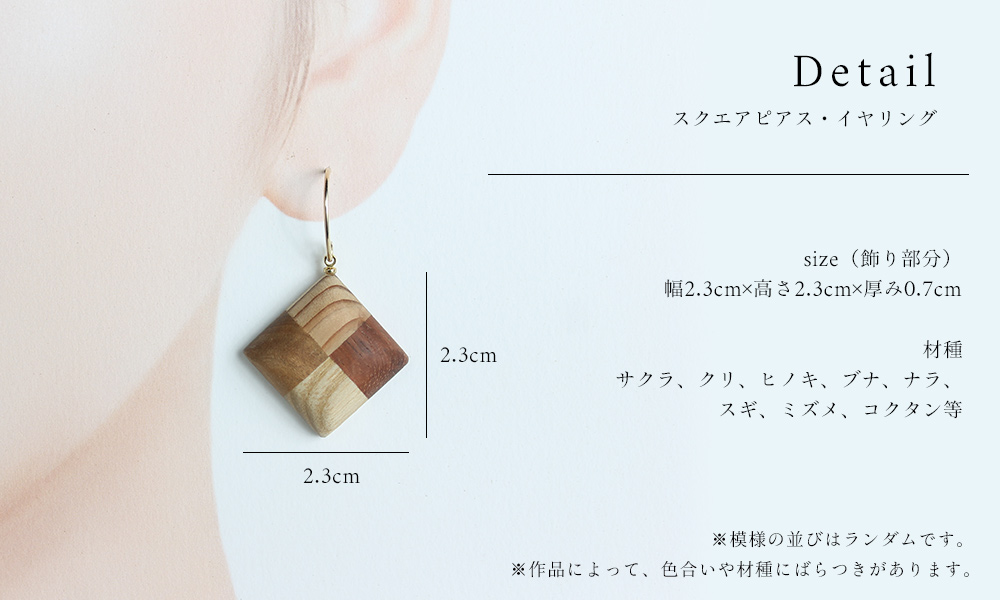 白谷工房 寄木のスクエアピアス・イヤリング 寄木細工 アクセサリー 送料無料(北海道・沖縄を除く)