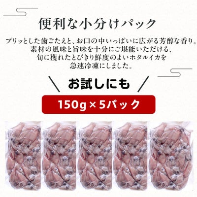 他の画像を見る プリッとした歯ごたえと独特の旨み ホタルイカ 冷凍 生 生食 刺身 750g(150g×5パック) 小分け 日本海産 ほたるいか 送料無料(北海道・沖縄を除く) 価格 ¥ 3,680 税込 詳細を見る お気に入りに登録する