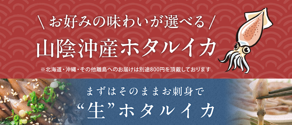 旬を迎えたこの時期だけの美味しい味覚、山陰沖産のホタルイカ。プリッとした歯ごたえと、お口の中いっぱいに広がる芳醇な香りは、海産物が豊富な山陰沖ならではの逸品。内蔵は旨味成分のひとつであるアミノ酸がたっぷりで甘味が強く、はらわたごと味わうと特に美味しいと評判です。