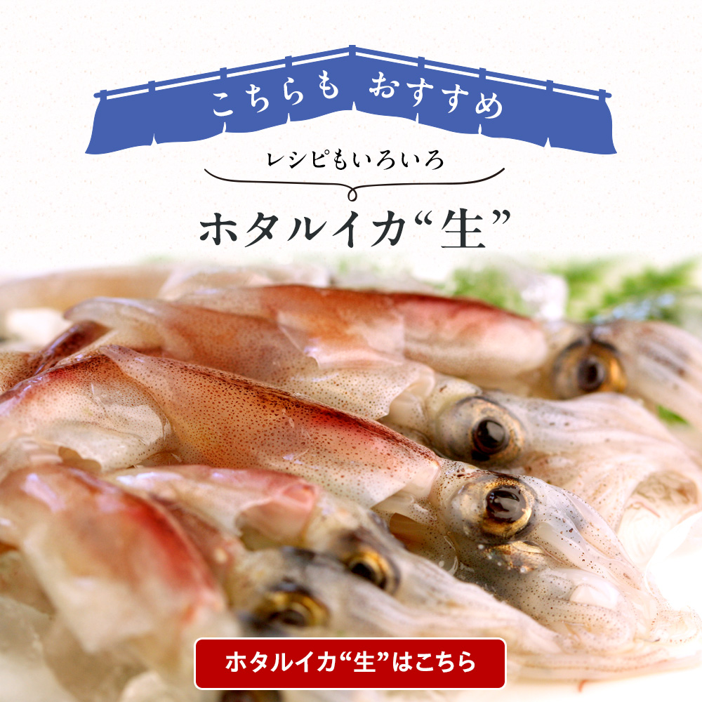 旬を迎えたこの時期だけの美味しい味覚、山陰沖産のホタルイカ。プリッとした歯ごたえと、お口の中いっぱいに広がる芳醇な香りは、海産物が豊富な山陰沖ならではの逸品。内蔵は旨味成分のひとつであるアミノ酸がたっぷりで甘味が強く、はらわたごと味わうと特に美味しいと評判です。