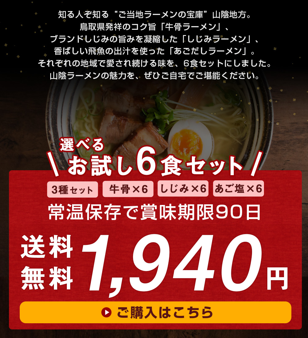 山陰ご当地ラーメン 食べ比べも選べる6食セット(牛骨・しじみ・あご塩) 生 麺 スープ付き らーめん詰め合わせ 送料無料 ネコポス