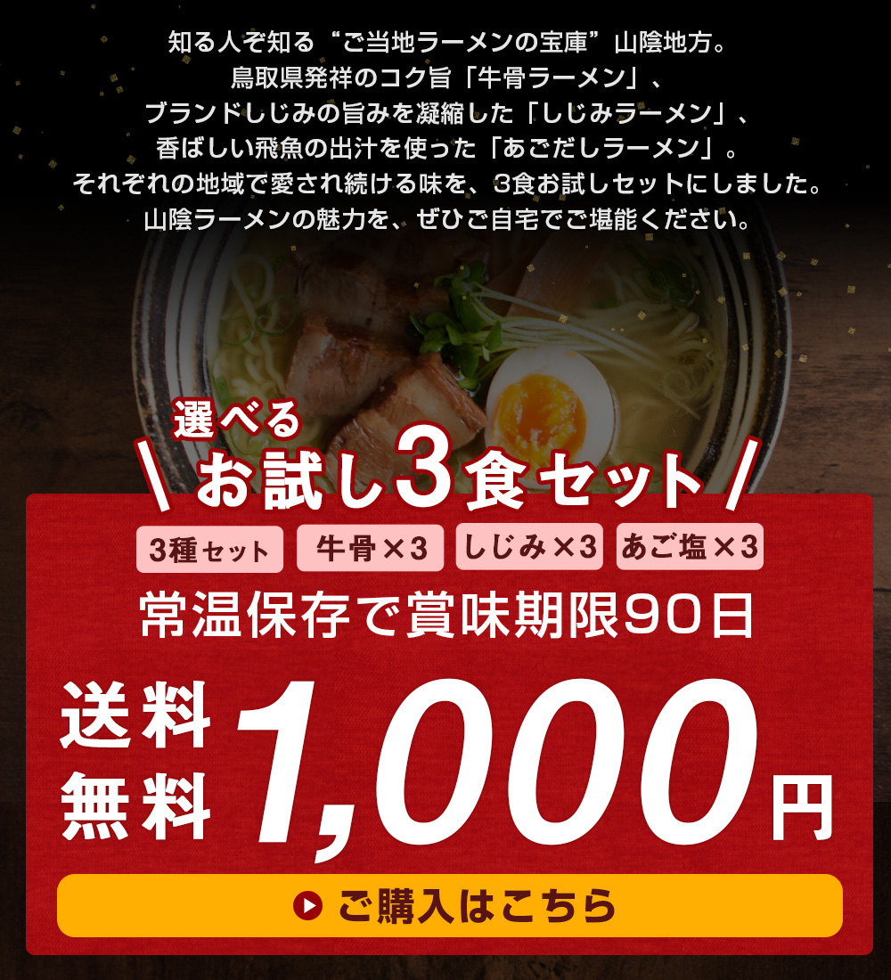 山陰ご当地ラーメン 食べ比べも選べる3食セット(牛骨・しじみ・あご塩) 生 麺 スープ付き らーめん詰め合わせ 送料無料 ネコポス