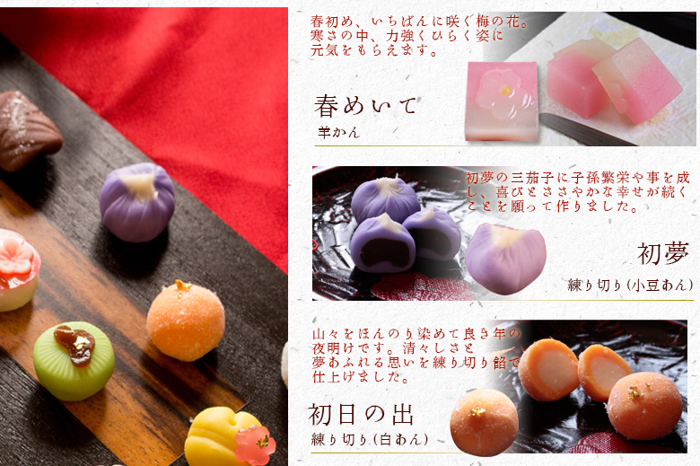 彩り鮮やかな上生菓子は日本三大菓子処「松江」伝統の味。食べてしまうのがもったいないほど美しい、宝石のような和菓子を風呂敷包みでお届けします。匠の和菓子職人が織りなす、季節の風情と風味をお愉しみください。