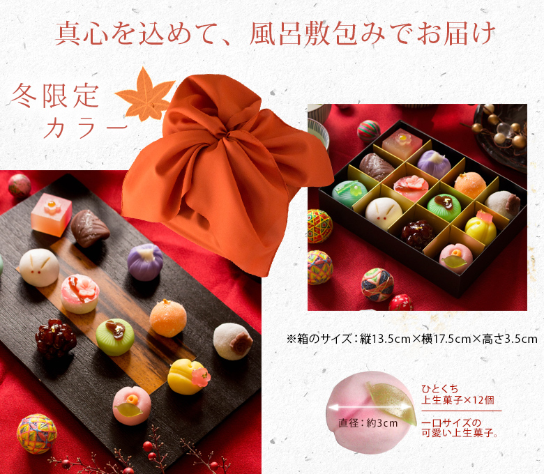 冬季限定 四季の十二撰 ひとくち上生菓子詰合せ(風呂敷包み) 送料無料(北海道・沖縄を除く)