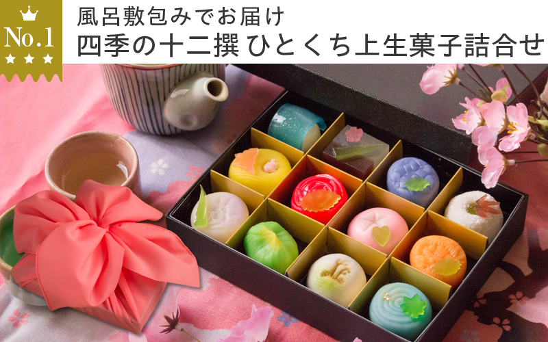 彩り鮮やかな上生菓子は日本三大菓子処「松江」伝統の味。食べてしまうのがもったいないほど美しい、宝石のような和菓子を風呂敷包みでお届けします。