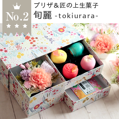 ・クリア箪笥BOX ・プリザーブドフラワー ・四季のひとくち上生菓子六撰 ・桜煎茶