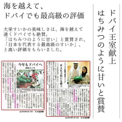 他の画像を見る 光センサーで糖度&空洞なしを保証!全国屈指のブランドスイカ 大栄すいか7kg前後(大玉サイズ)×1玉 鳥取県産 ご贈答用大栄スイカ お中元 送料無料(北海道・沖縄を除く) 価格 ¥ 5,480 税込 在庫切れ 詳細を見る お気に入りに登録する