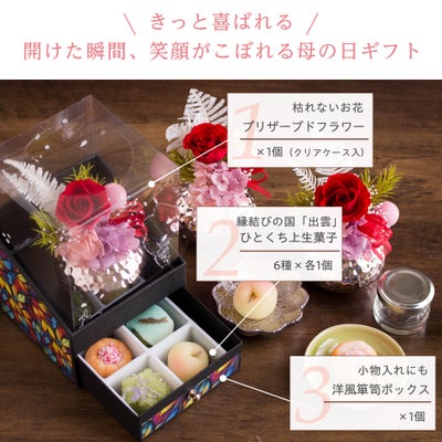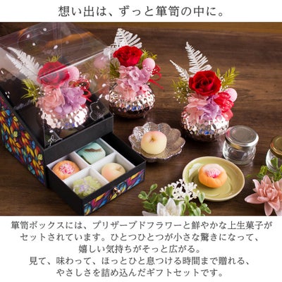 他の画像を見る モダンジャパニーズテイストが美しい 母の日 和風プリザーブドフラワー&上生菓子セット「四季穂(しきほのか)」 クリア和箪笥箱入り 送料無料(北海道・沖縄を除く) 価格 ¥ 5,480 税込 詳細を見る お気に入りに登録する