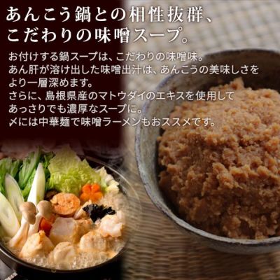 他の画像を見る あん肝たっぷリ100g入り!本場直送のあんこう鍋 あんこう鍋セット(あん肝100g・味噌スープ付き) 4~6人前 島根県浜田産 どぶ汁鍋 送料無料(北海道・沖縄を除く) 価格 ¥ 7,980 税込 カートに入れる お気に入りに登録する