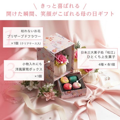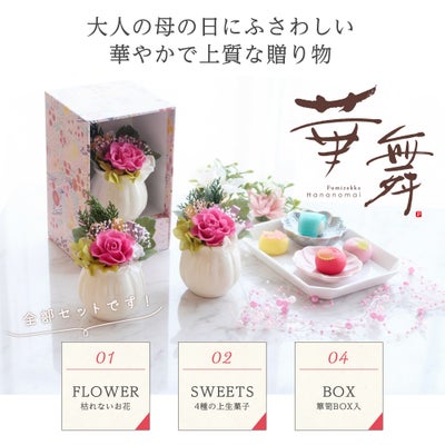 他の画像を見る 飾れるオリジナル和箪笥箱入り 母の日 和風プリザーブドフラワー&ひとくち上生菓子セット「華舞(はなのまい)」 箪笥箱入り 送料無料(北海道・沖縄を除く) 価格 ¥ 3,980 税込 詳細を見る お気に入りに登録する