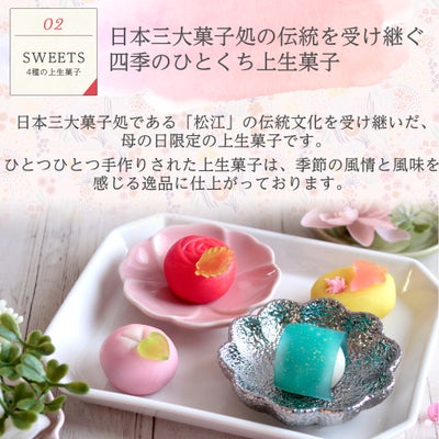他の画像を見る 彩り華やか!日本三大菓子処「松江」伝統の味 母の日 春季限定 四季の十二撰 ひとくち上生菓子詰合せ(風呂敷包み) 送料無料(北海道・沖縄を除く) 価格 ¥ 3,480 税込 詳細を見る お気に入りに登録する
